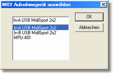 MIDI Eingabegerät auswählen